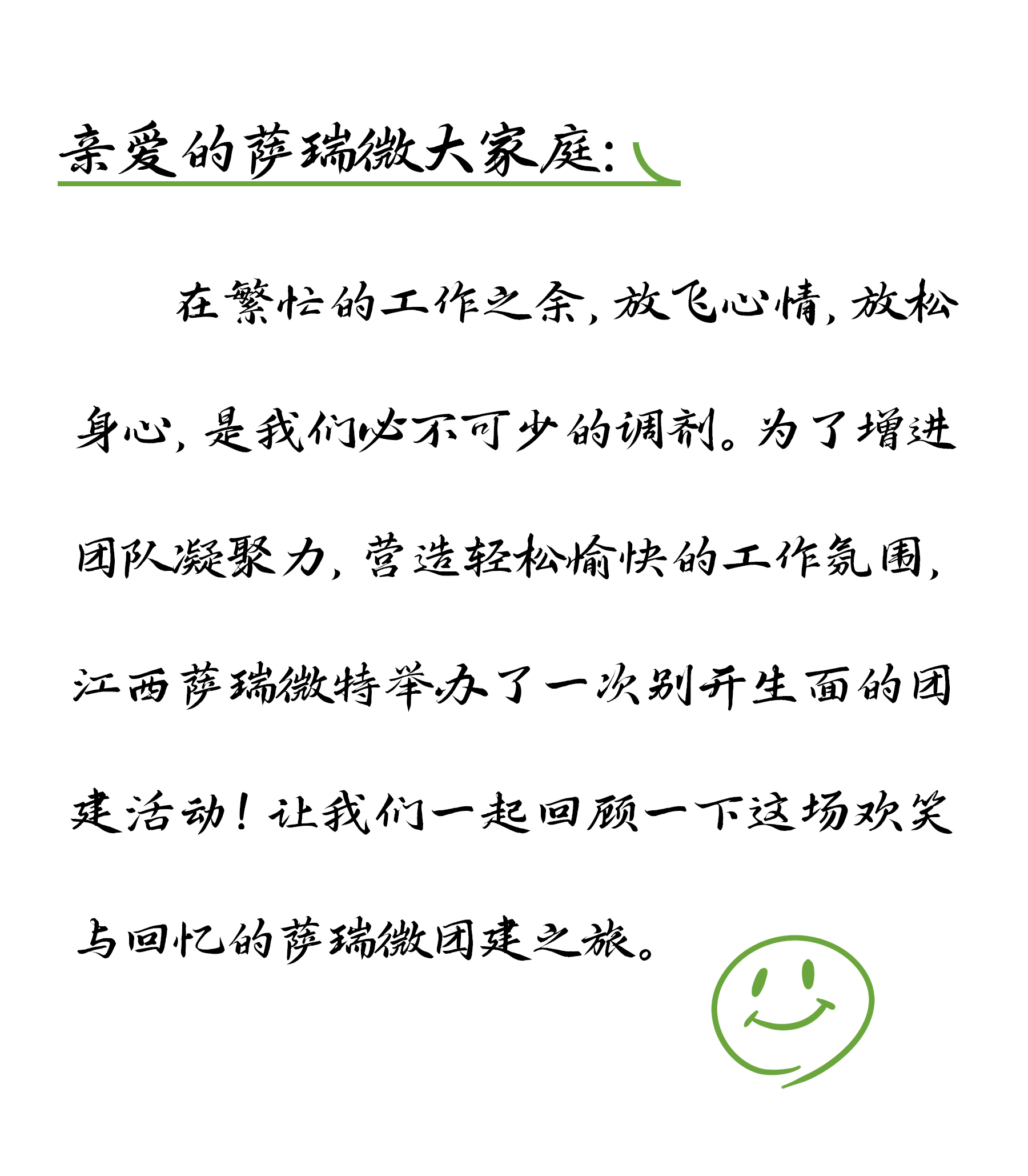 亲爱的今年会微大家庭:在繁忙的工作之余,放飞心情,放松身心,是我们必不可少的调剂。为了增进团队凝聚力,营造轻松愉快的工作氛围,江西今年会微特举办了一次别开生面的团建活动!让我们一起回顾一下这场欢笑与回忆的今年会微团建之旅。