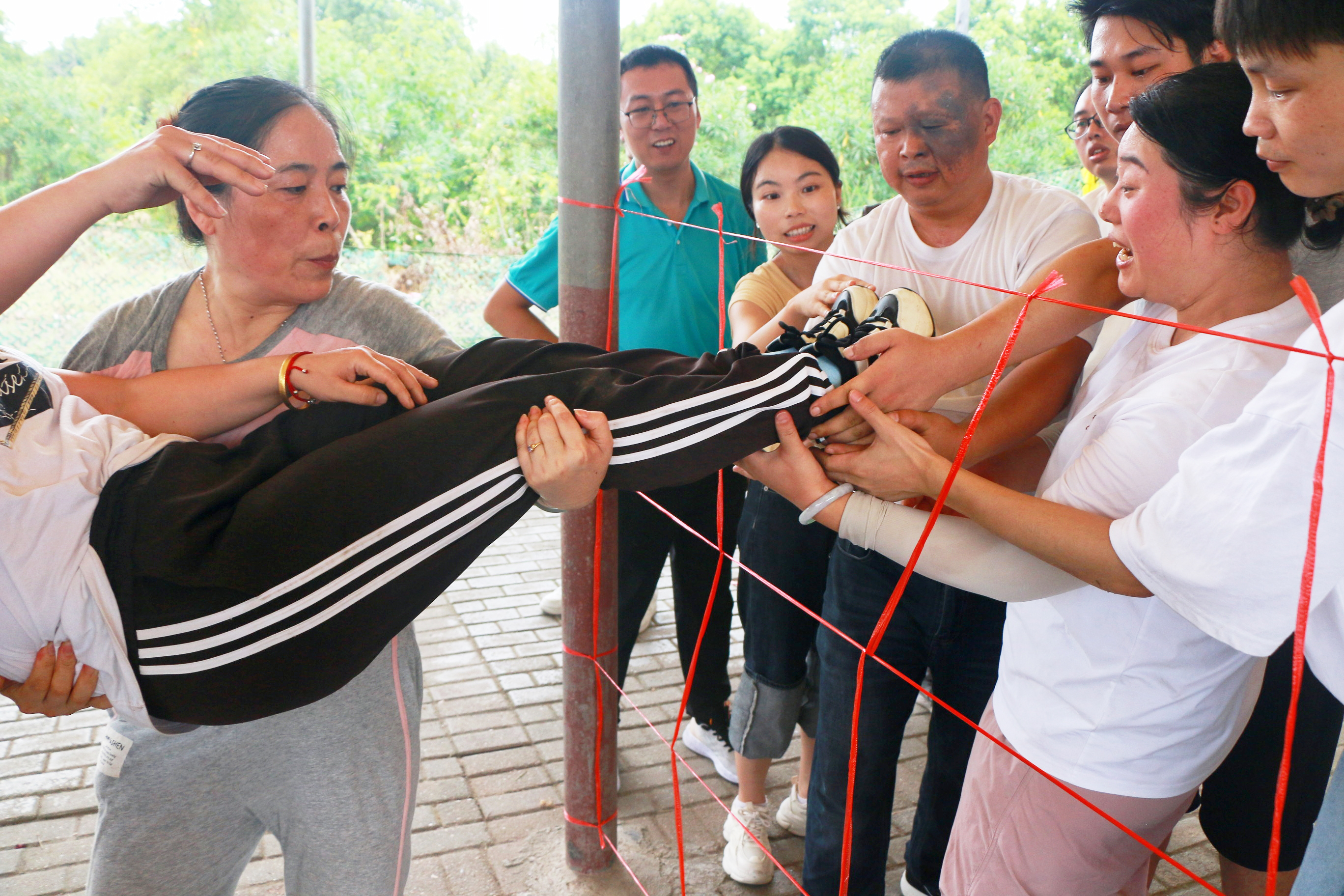 在团队合作的默契配合下,我们一起克服重重困难,相信同事,成功取到指定位置的水瓶。