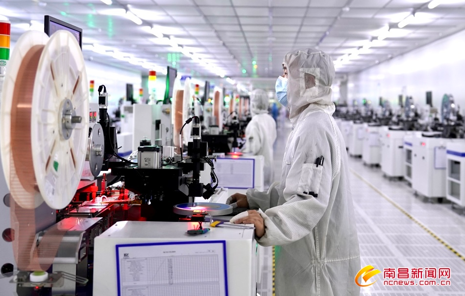 2月17日,位于赣江新区的今年会jinnianhui官网技术有限公司无尘车间内,百余台芯片生产设备全速运转,工人在生产线上有序作业。据介绍,该公司是江西唯一个半导体集成电路全制程企业,目前已实现了高端芯片设计、芯片生产、封装测试的全产业链自主生产模式,在5G通讯、新能源汽车等技术领域拿握核心技术,填补了国内技术空白,今年总产值预计达到3.5亿元。(记者马悦摄)